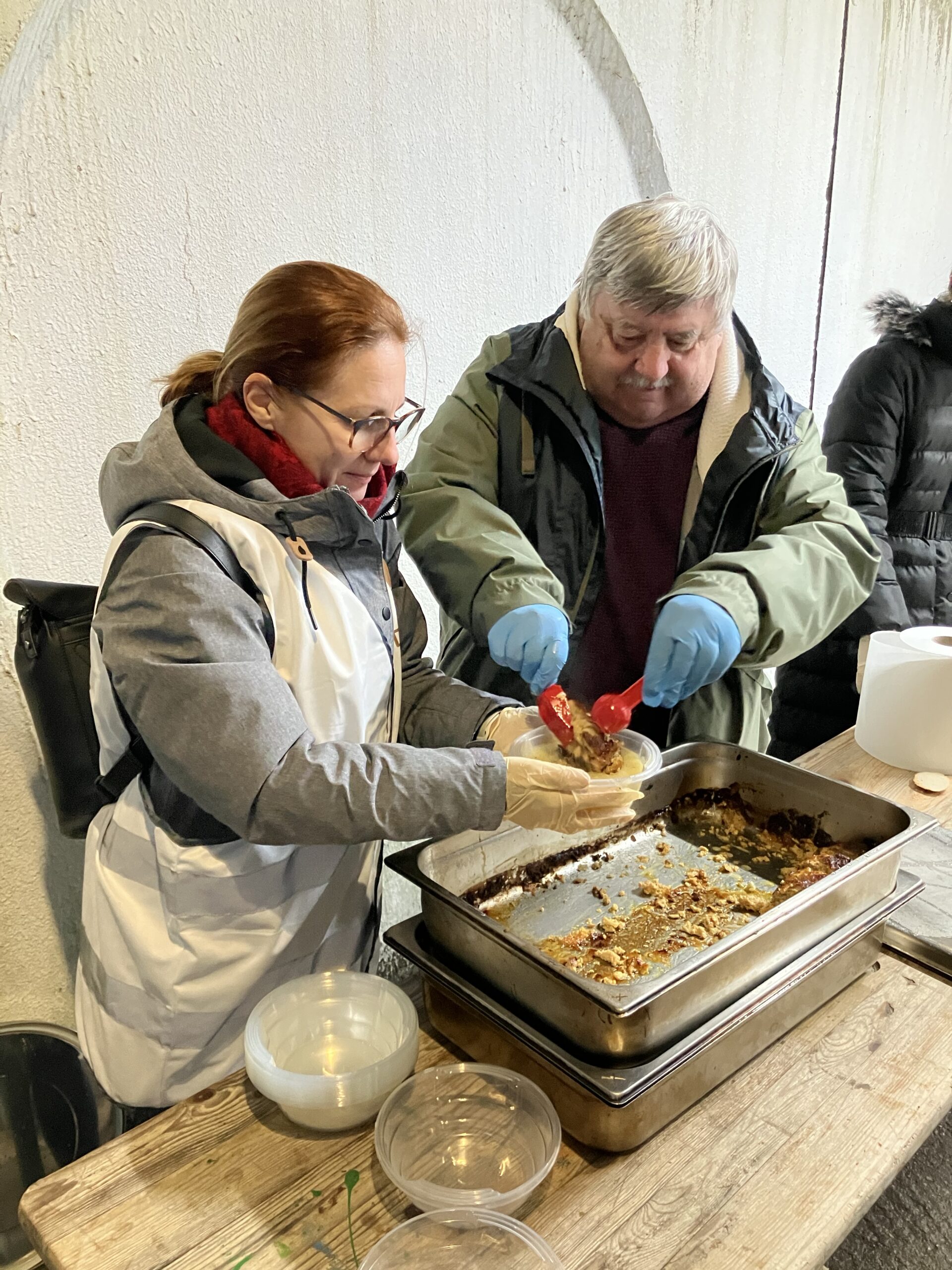 Túto službu realizujeme v spolupráci s mestskou časťou Petržalka. Vďaka nim máme prístup ku kvalitným surovinám, z ktorých týždenné navaríme 80 až 100 porcii výživného jedla. Nepodávame len jedlo – vytvárame ľudské stretnutia, kde záleží na dôstojnosti a atmosfére.
