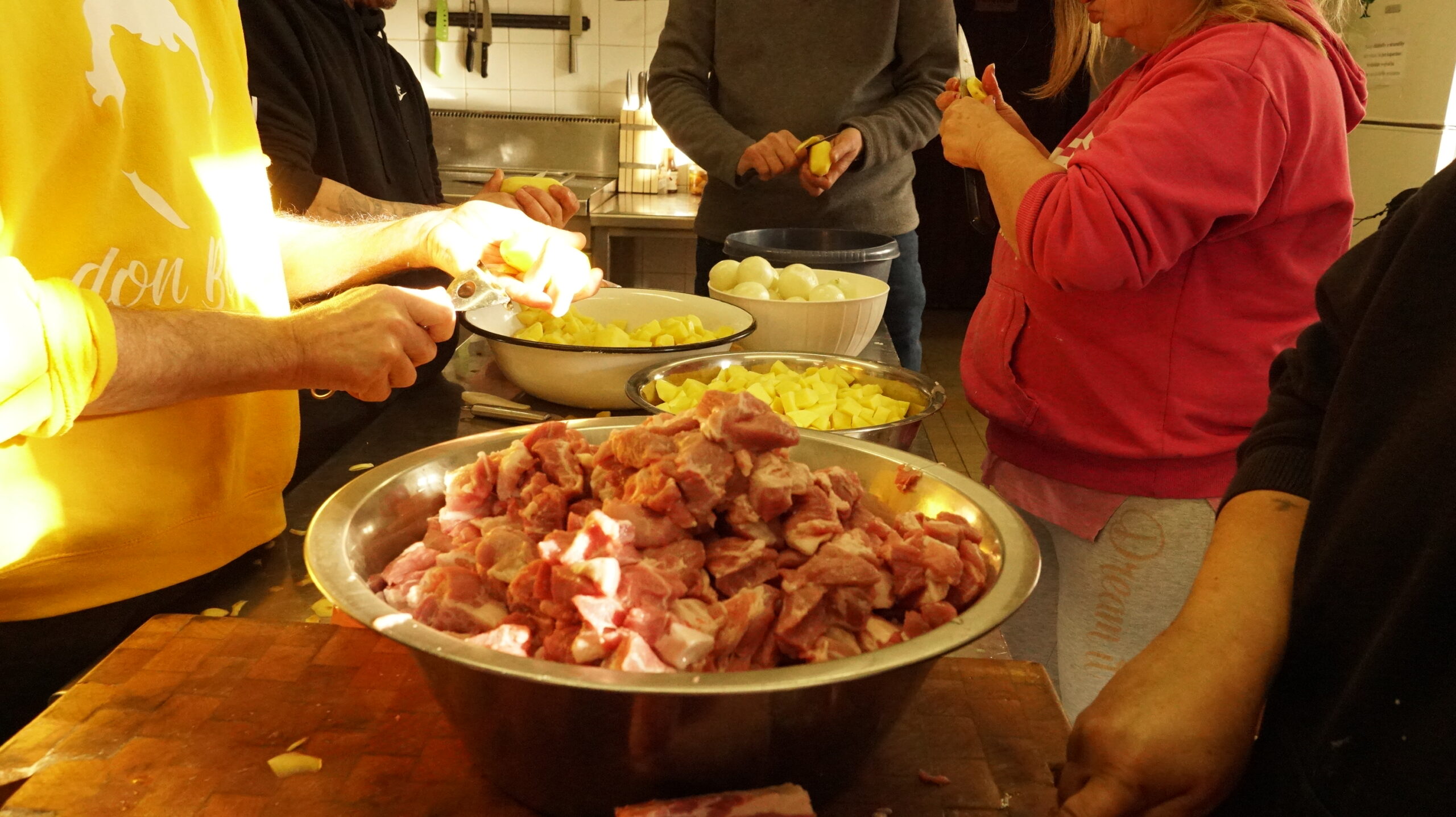 Každý pondelok varíme teplé, chutné a výživné jedlo pre ľudí v núdzi. Do procesu varenia vždy zapájame našich klientov, ktorí si hľadajú prácu, ale pre chýbajúce pracovné návyky nie sú na pohovoroch úspešný. Zároveň sú tak viac motivovaní k zmene, cítia zodpovednosť za výsledok svojej práce, a vedia, že niekam patria.